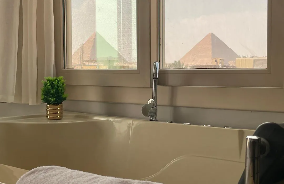 El Golden Mask Pyramids Inn Kafret el-Gabal ofrece habitaciones con una zona de comedor y una zona de estar, climatizador e internet de alta velocidad y TV de pantalla plana con canales vía satélite. Las habitaciones, amuebladas con un aparador, también disponen de un hervidor de agua y servicio de tetera/cafetera. Un bidé, una ducha a ras de suelo y un inodoro separado, además de secador de pelo y toallas, están a tu disposición.